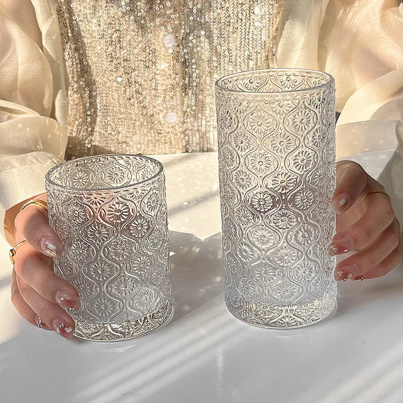 Made from high-quality, durable glass, this cup can withstand daily use while maintaining its clarity and elegance. Its comfortable size and shape make it ideal for serving a variety of beverages, from lattes and milk drinks to iced coffee or water. The carved texture adds grip and visual appeal, making each cup unique.