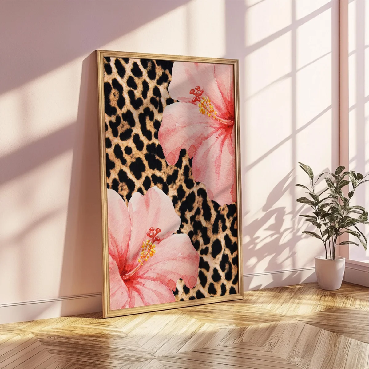 The Funky Y2K Leopard Flower Wall Art is a bold and playful statement piece designed to energize your space. Featuring vibrant pink tones, leopard and cheetah patterns, and hibiscus flowers, this artwork captures the fun spirit of Y2K and vintage Hawaiian aesthetics.