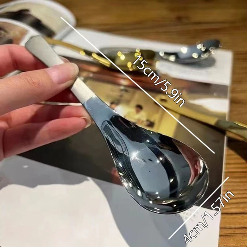 The Korean Stainless Steel Soup Spoon combines style, durability, and practicality, making it an essential flatware item for modern kitchens. It enhances both functionality and table presentation while providing a high-end dining accessory suitable for any occasion.