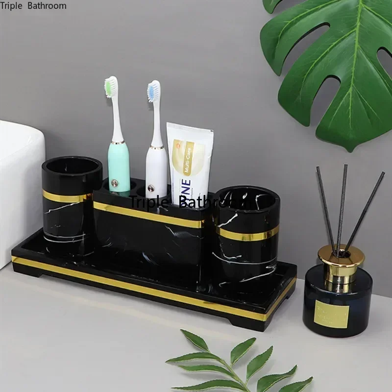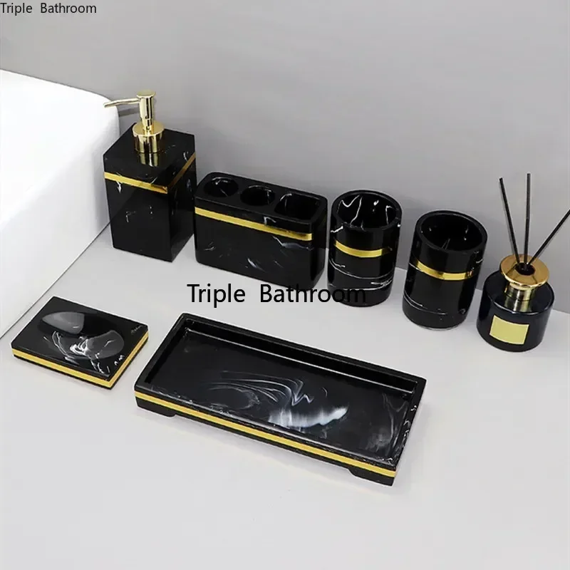 Compact yet comprehensive, the Luxury Resin Bathroom Set fits neatly on countertops or vanities without occupying excessive space. It combines practicality, elegance, and durability, transforming ordinary bathroom accessories into a coordinated, visually appealing display. This set is ideal for homeowners seeking a functional and stylish upgrade to their bathroom organization.