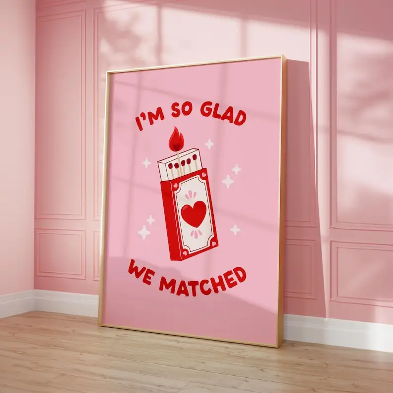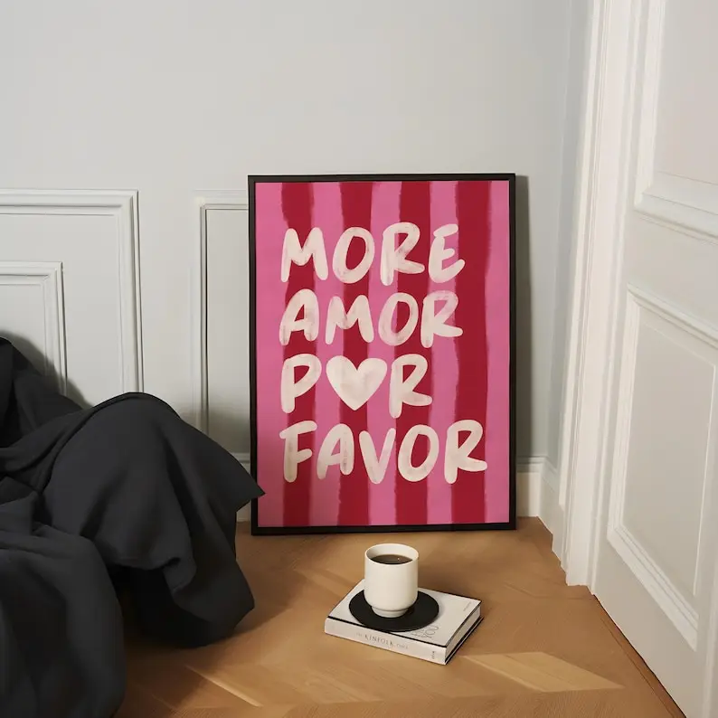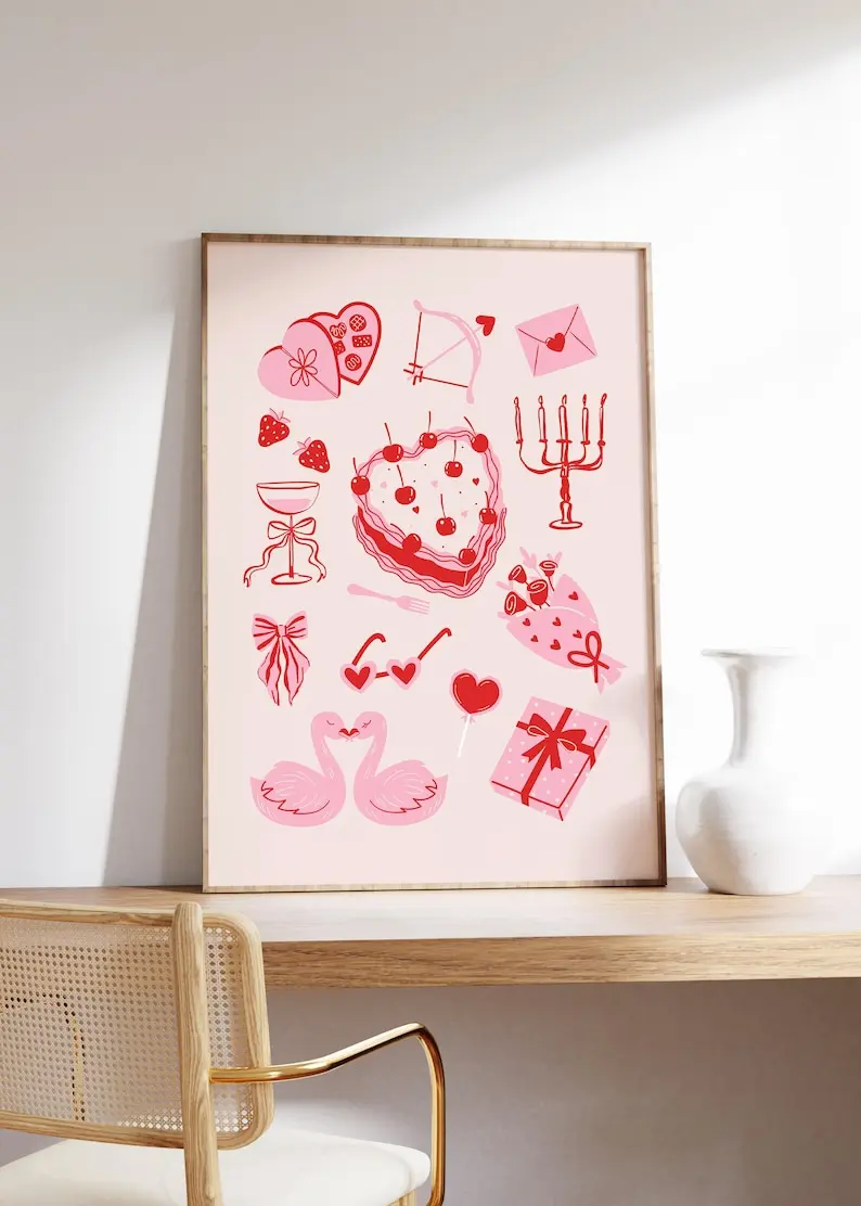 Perfect for Valentine’s Day decorating, this romantic artwork enhances living rooms, bedrooms, dining areas, or cozy nooks with a joyful and loving atmosphere. Its modern aesthetic pairs beautifully with contemporary, minimalist, and playful interiors.