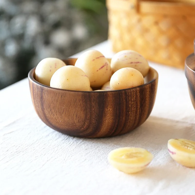 The natural wood finish adds a rustic and elegant aesthetic to your dining table, enhancing any meal presentation. Its multipurpose design allows it to function as a serving dish, snack bowl, or storage container for a variety of ingredients.