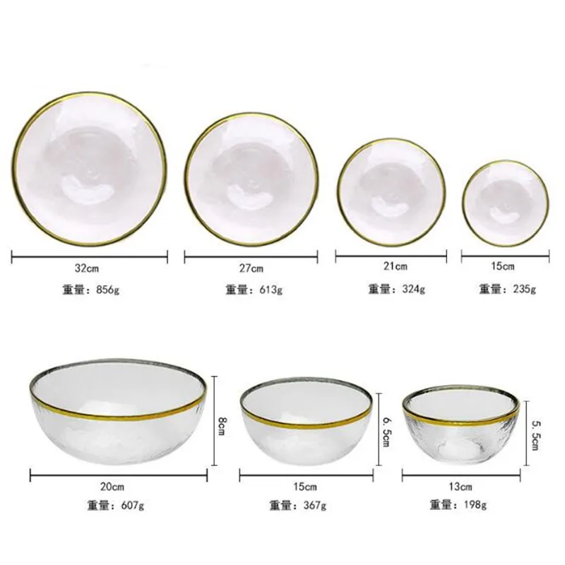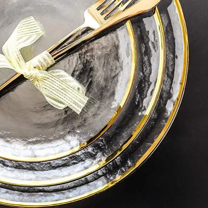 The Nordic Glass Plate Bowl is a stylish and versatile piece of tableware perfect for serving fruits, salads, steaks, or snacks. Crafted from high-quality glass, it features a transparent, colorful design with an elegant gold edge that adds a luxurious touch to any dining setting.