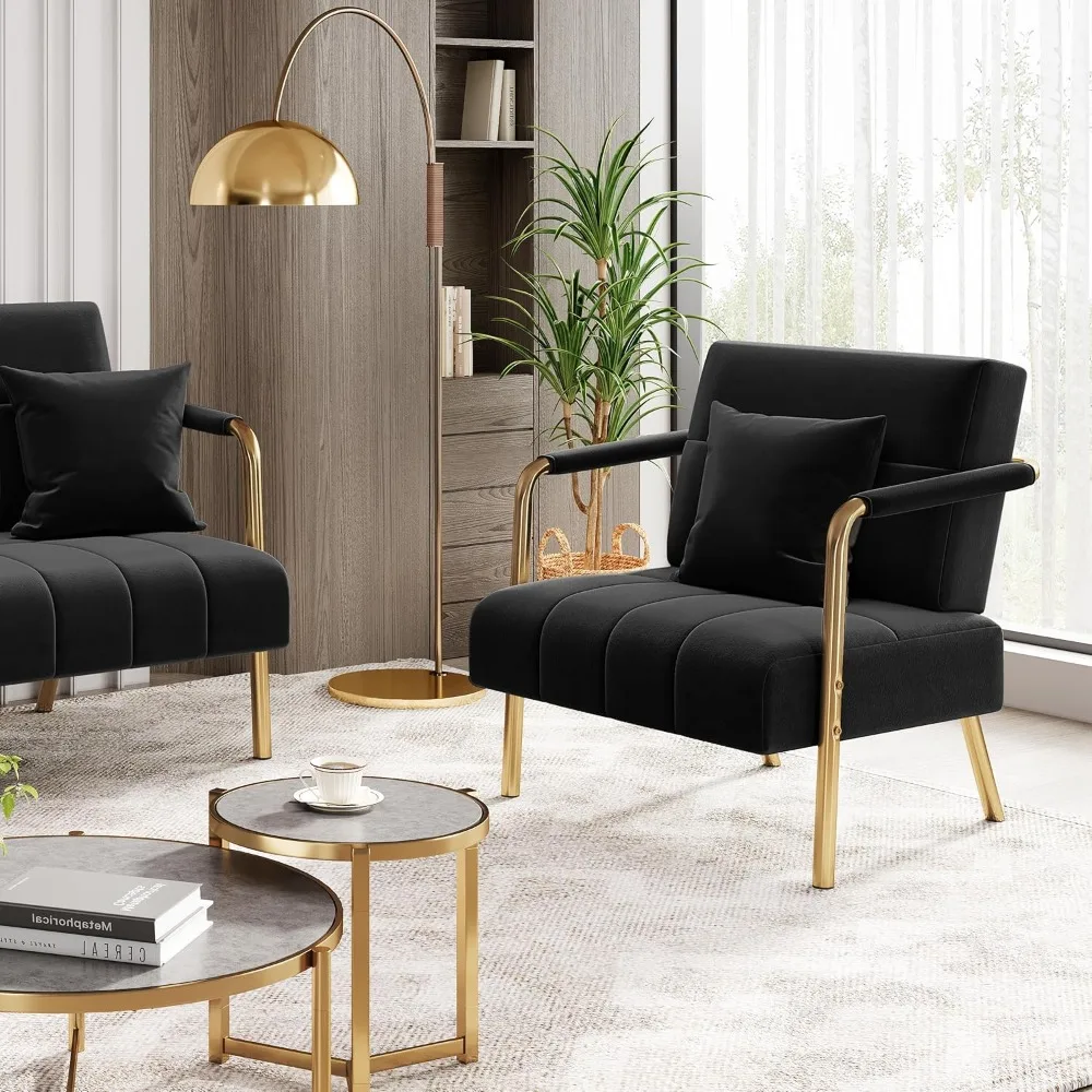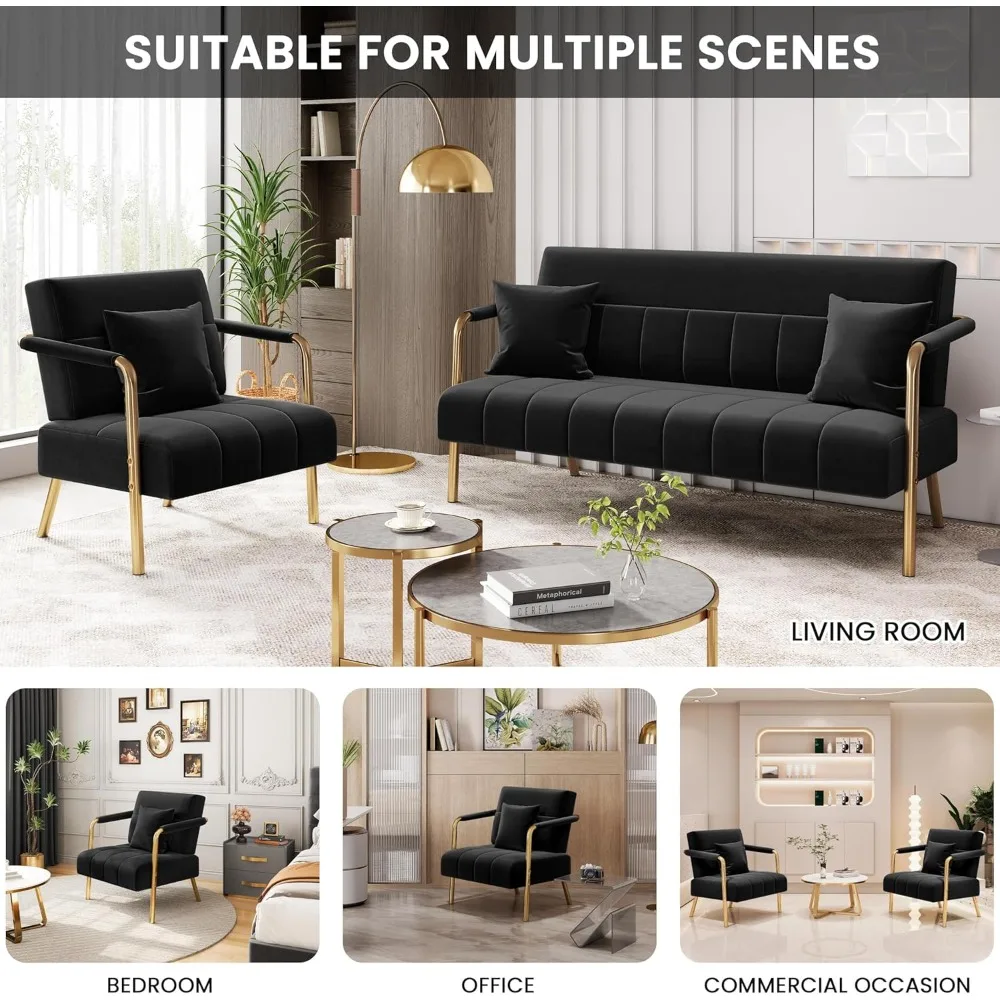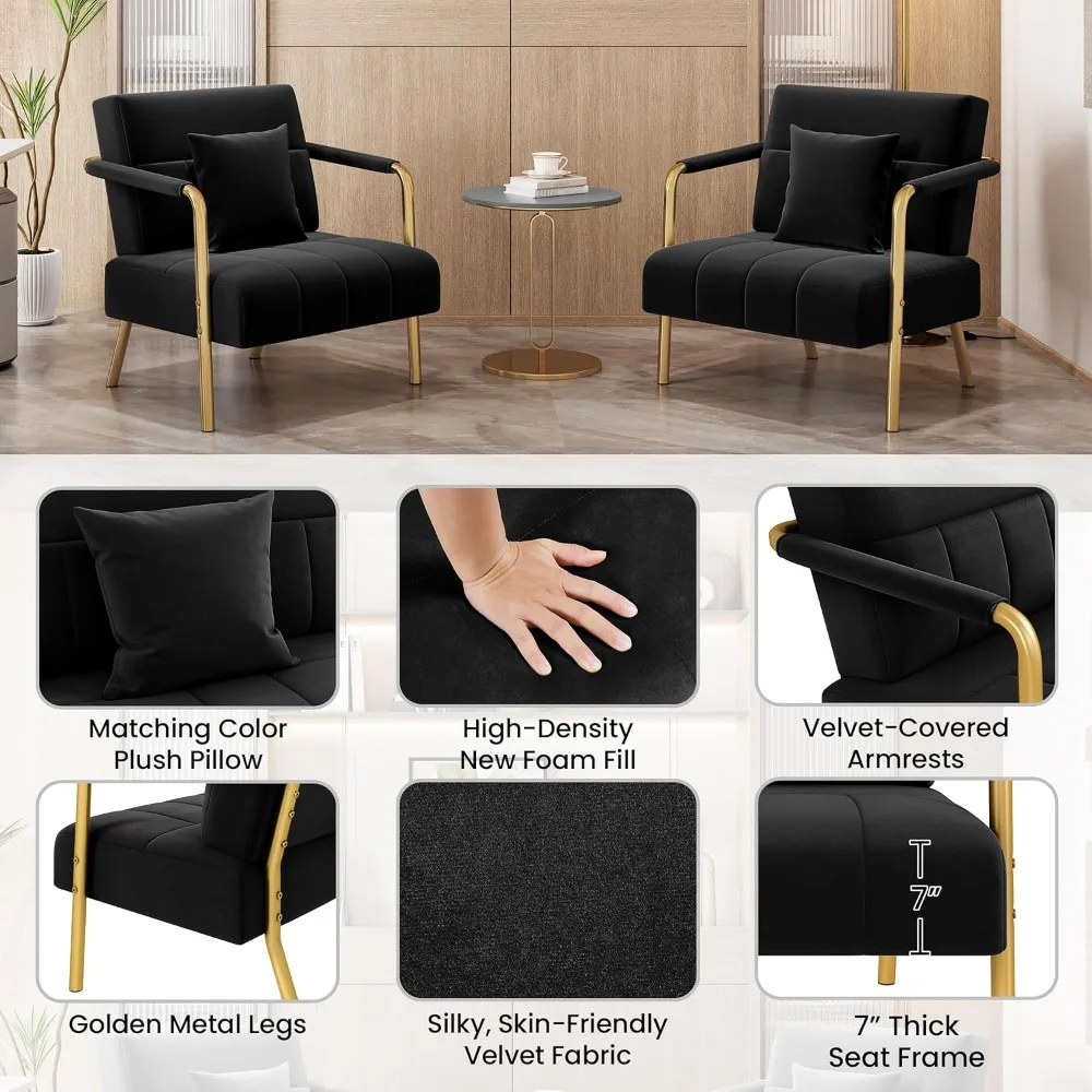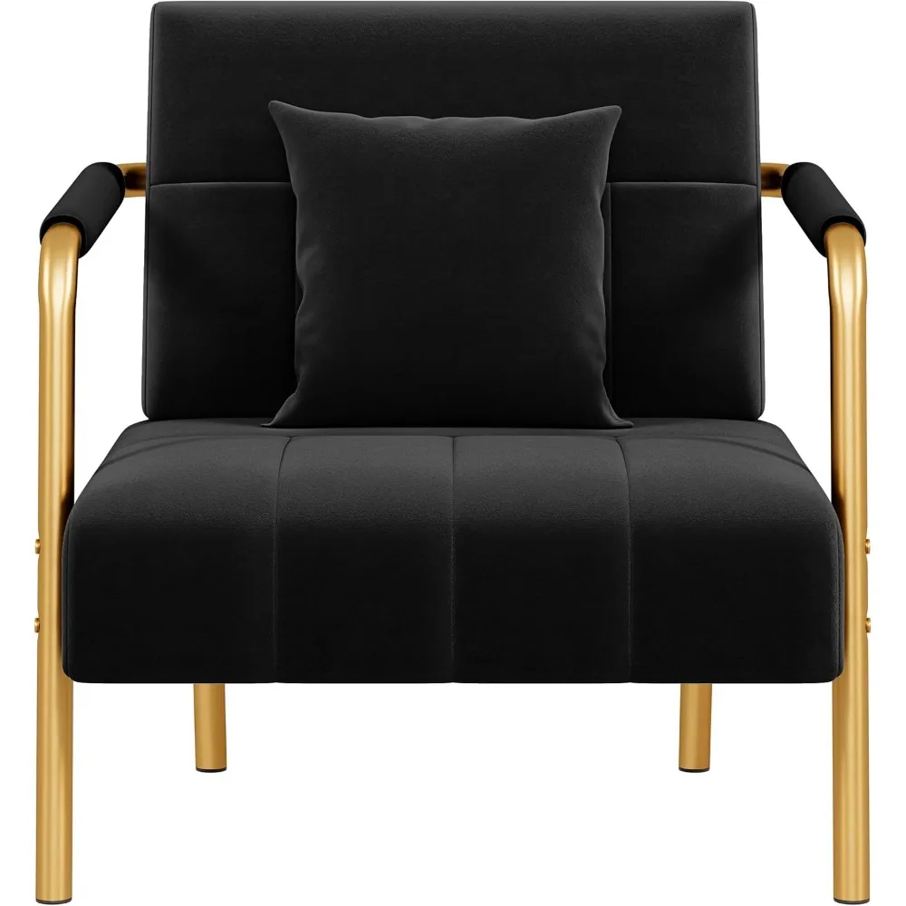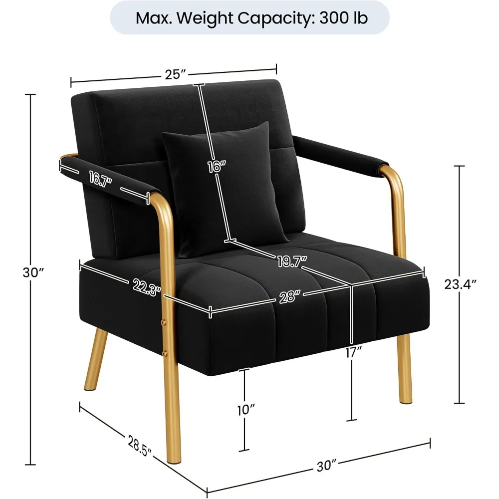 Supported by a sleek golden frame, the chair features a sturdy structure with a touch of glamour that instantly enhances your home décor. The included cozy pillow adds extra comfort and support, making it even more inviting. Designed to complement a range of interior styles—modern, contemporary, glam, or minimalist—this armchair serves as both a functional seat and a stylish statement piece.