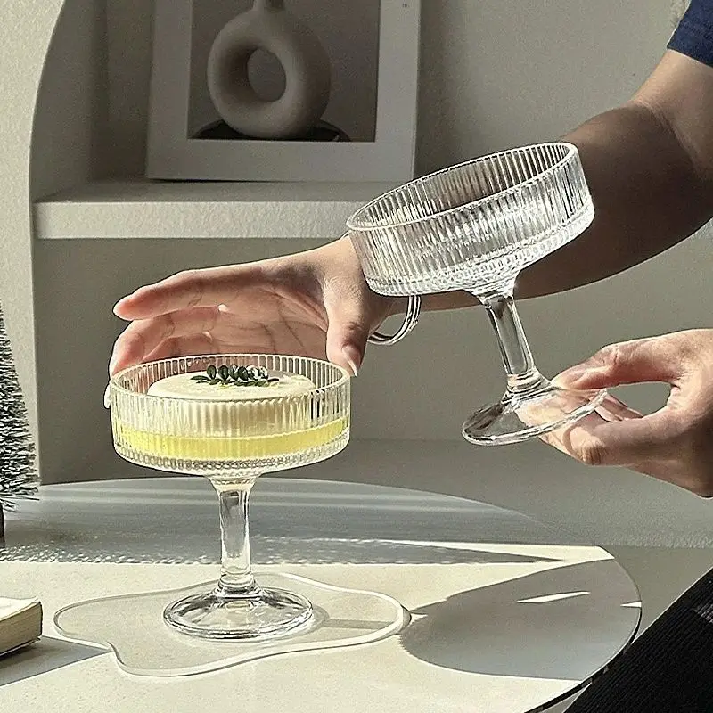The Vertical Ribbed Dessert Glass is a versatile and elegant addition to any table setting. Designed with a 200ml capacity and a stylish stem, it is perfect for serving ice cream, cocktails, jelly, yogurt, parfaits, and other desserts. The vertical ribbed texture adds a sophisticated touch while enhancing grip and visual appeal.
